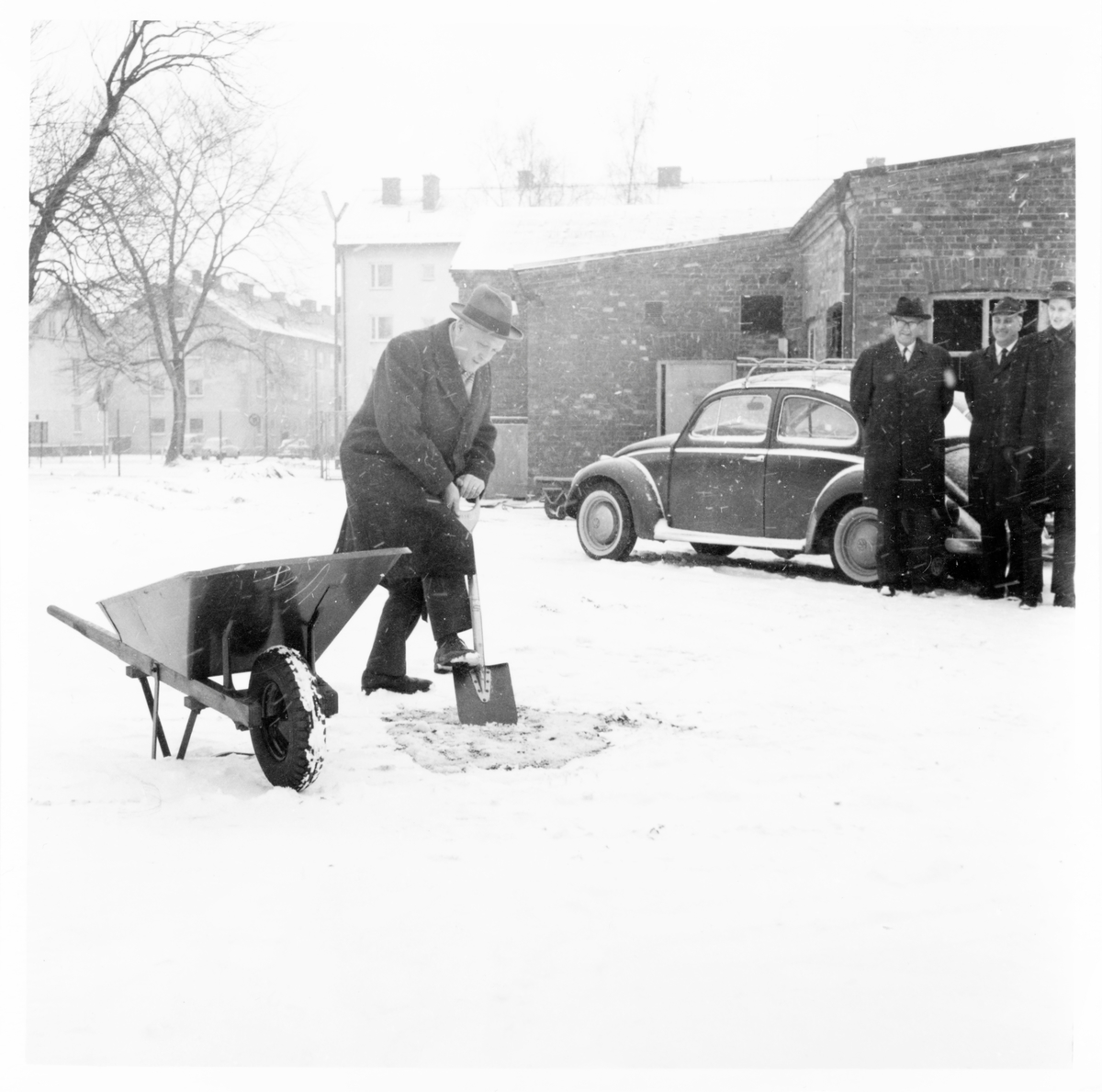 Vänersborg. Televerkstaden / Teli AB. Första spadtaget till nya matsalen.