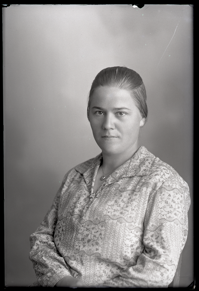 Kvinnoporträtt. Märta Lundgren, Nedervi, Lillhärad.