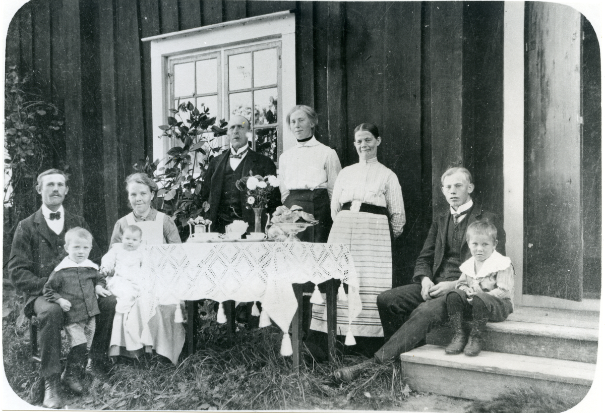 Familjen Ågren vid Lövhyddan, Herrskogen. 1915.