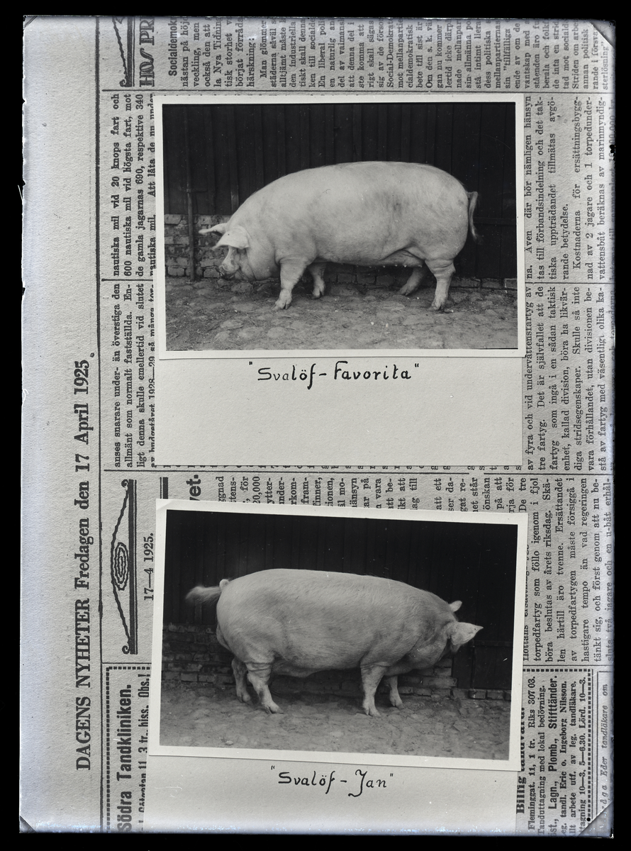 Avfotograferad bild av gris. Svalöf-Favorita och Svalöf-Jan. Dir. Celsing, Kolbäck.