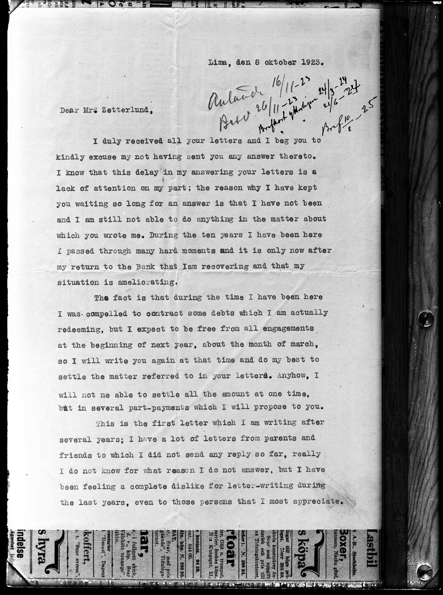 Brev. Ingenjör Zetterlund, Kolbäck.