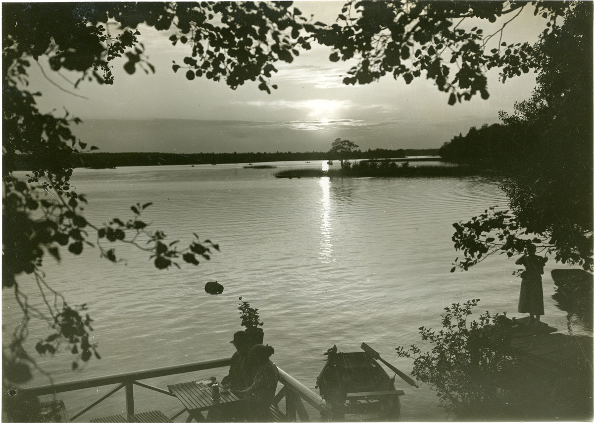 Solnedgång över Långforsen vid Måns Ols, 1924.