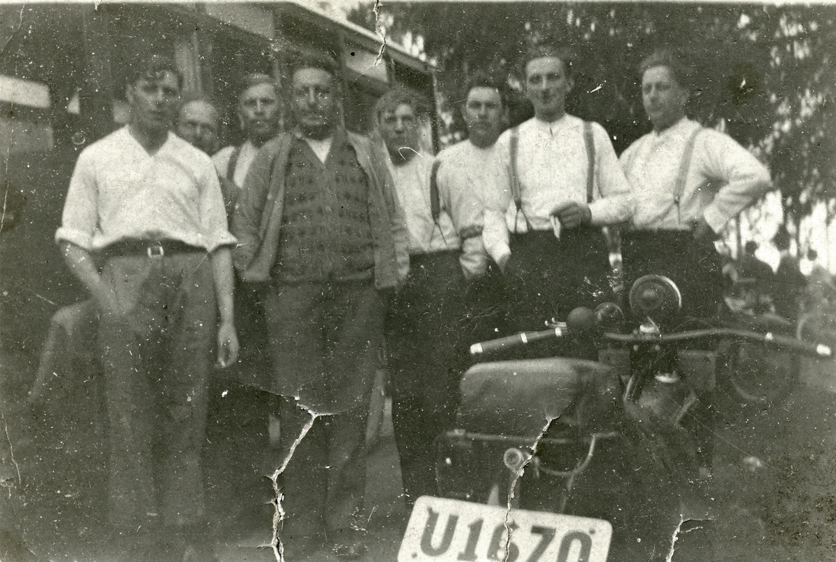 Bilförare från Sala inför dragkamp i Färnebo. C:a 1950-tal.