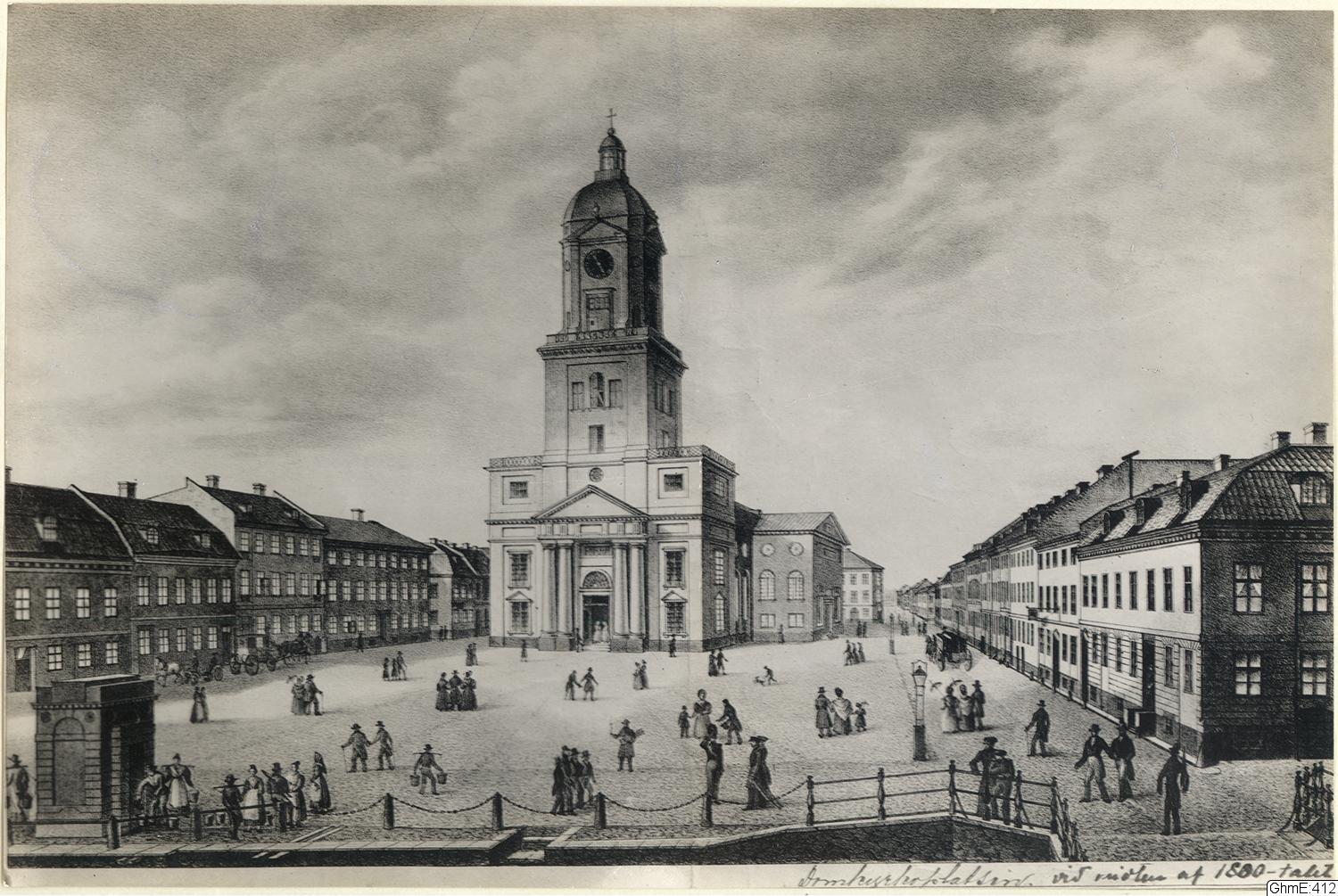 Domkyrkoplatsen 1837. Originalet Tuschlavering