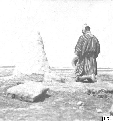 Indian förrättar bön framför en vitstruken jord- kägla, symbolen för andeväsendet mallcu. Se Métraux: Chipayaindianerna i Ymer, årg. 1932, tv. 2 o 3, fig. 27.