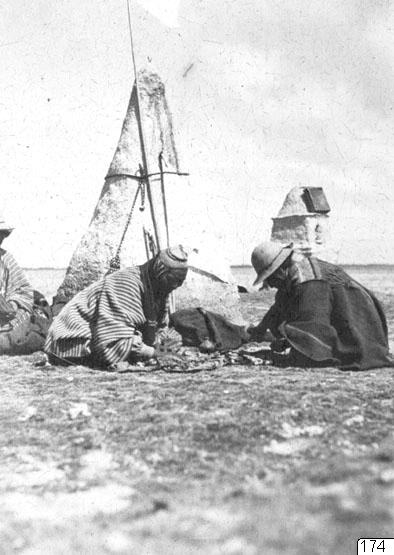 Medicinmannen bereder de 36 små skålarna med offren. Här offras åt en mallcu. Se Métraux: Chipaya- indianerna i Ymer, årg. 1932, tv. 2 o 3, fig. 29. Sydamerikanska Indianer, stam: Chipaya