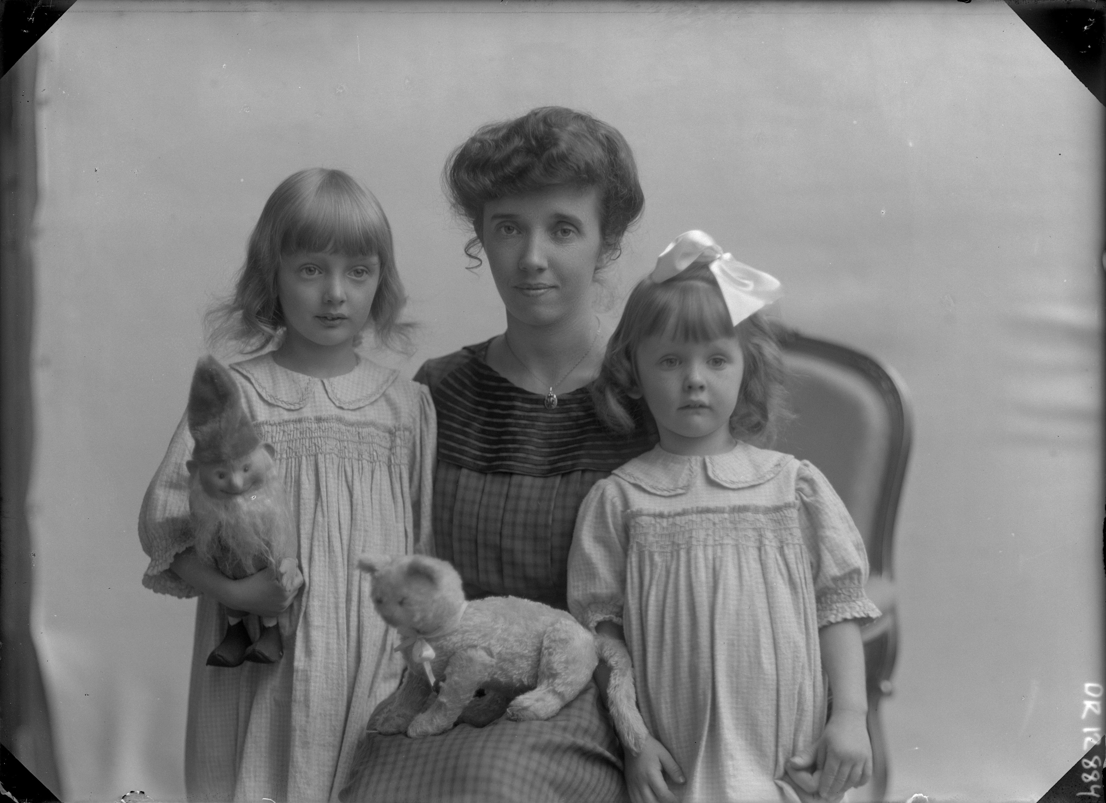 Beskrivning: Sehaar, kvinna med 2 flickor, halvbild.