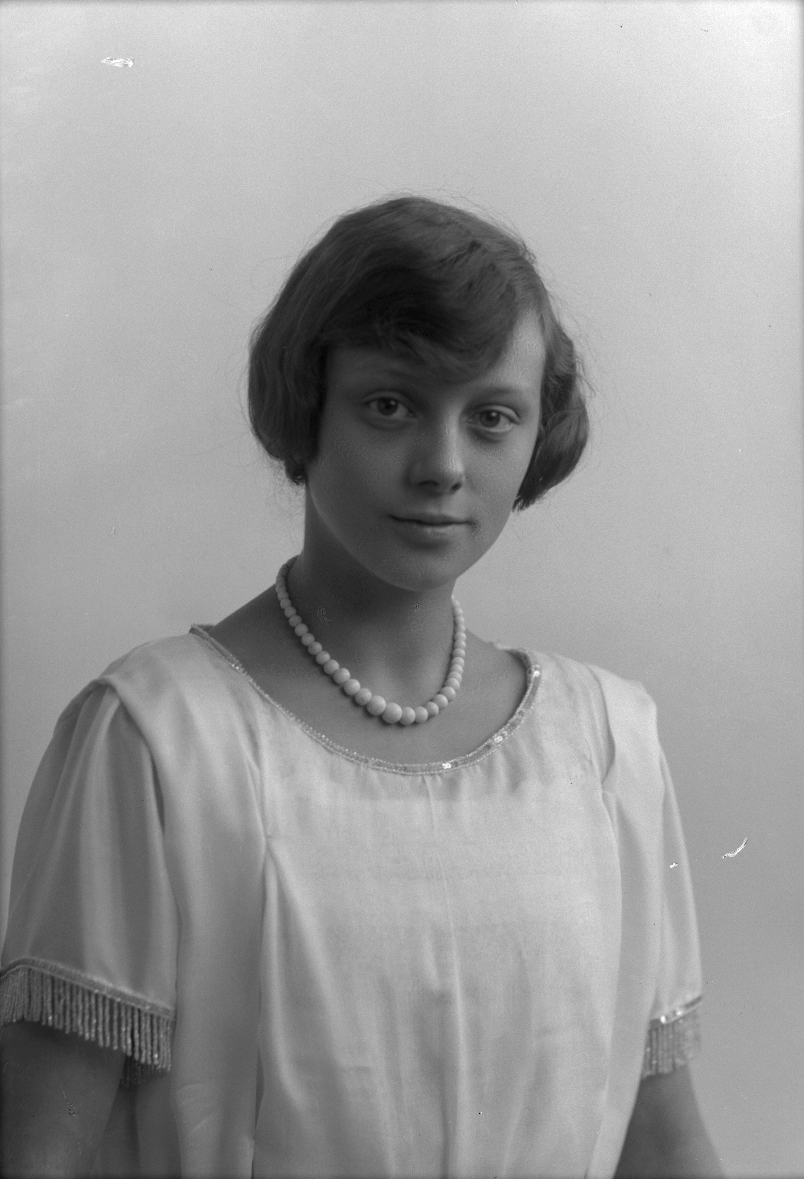 Beskrivning: Porträtt i halvfigur av Elsa Areskoug.