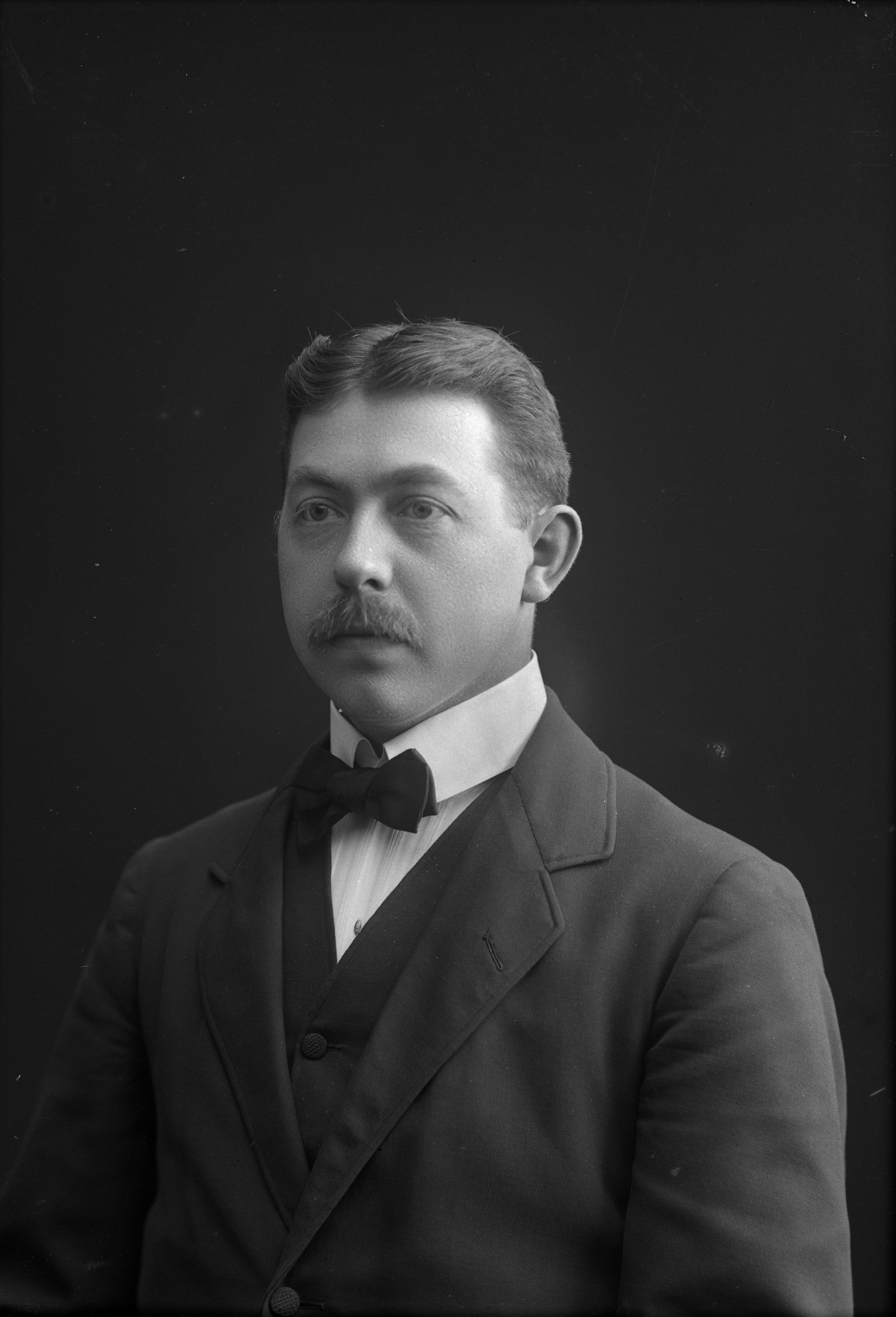 Beskrivning: Porträtt i halvfigur av Svante Svensson i Svalöv.