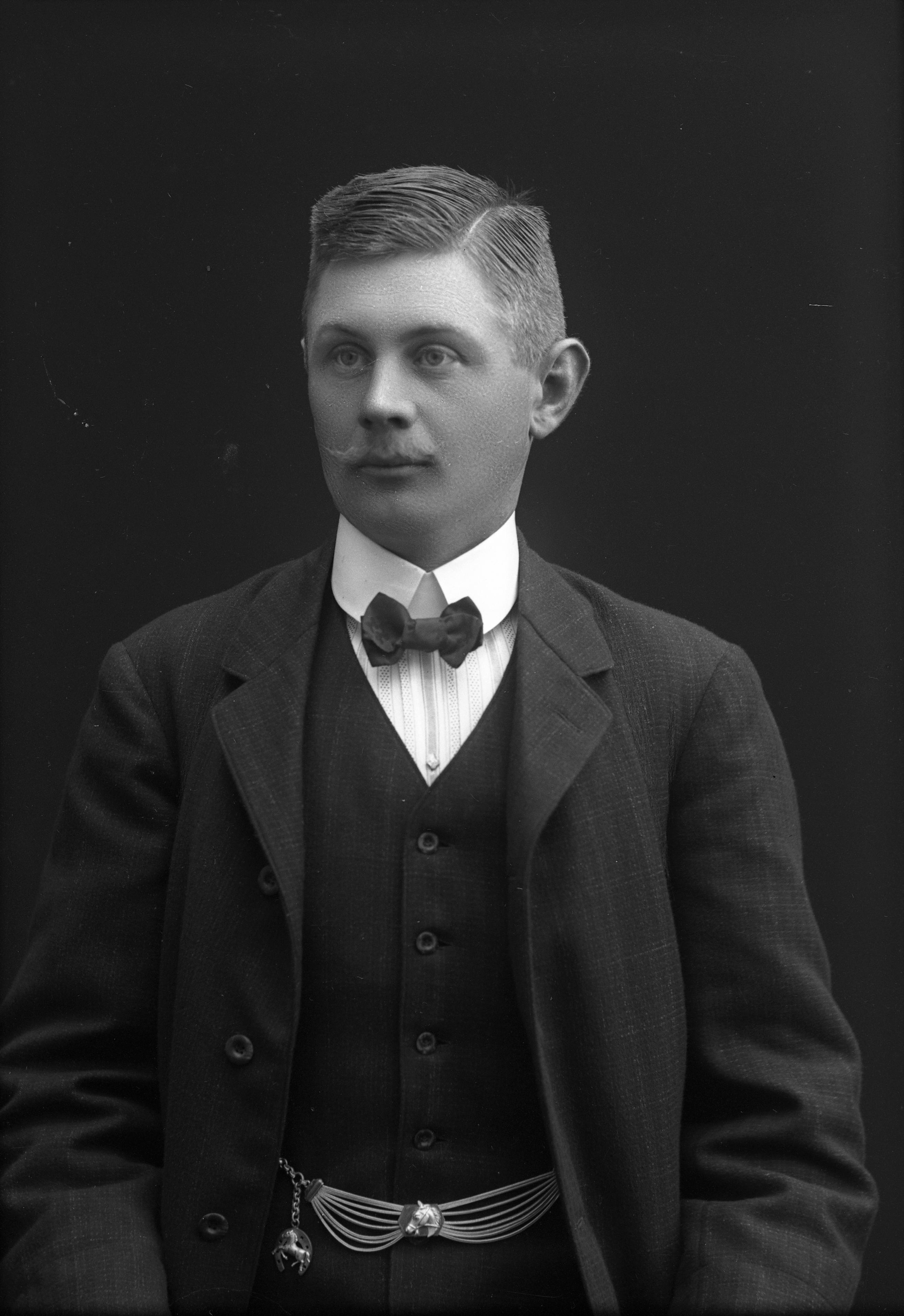 Beskrivning: Porträtt i halvfigur av Axel Källström.