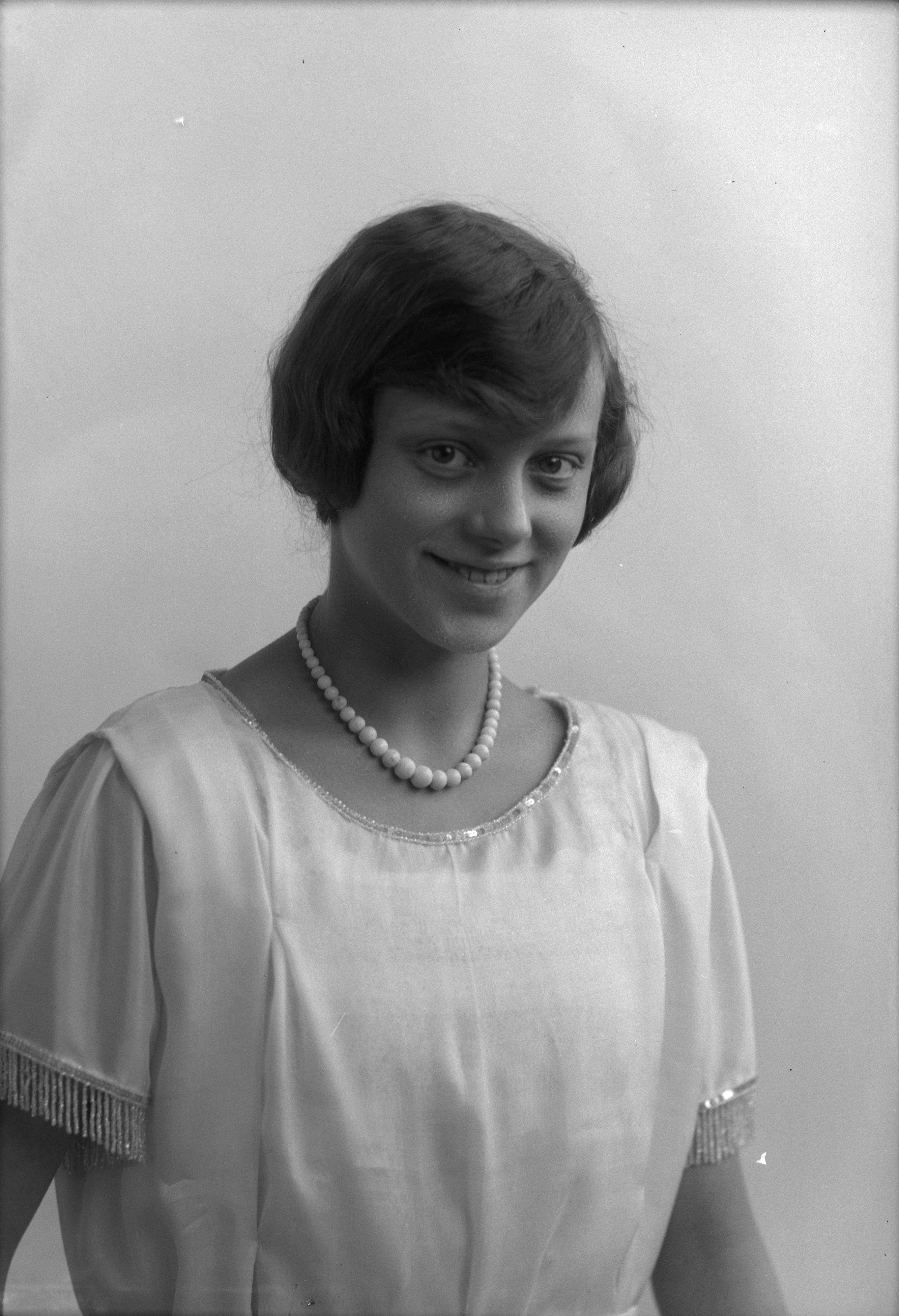 Beskrivning: Porträtt i halvfigur av Elsa Areskoug.