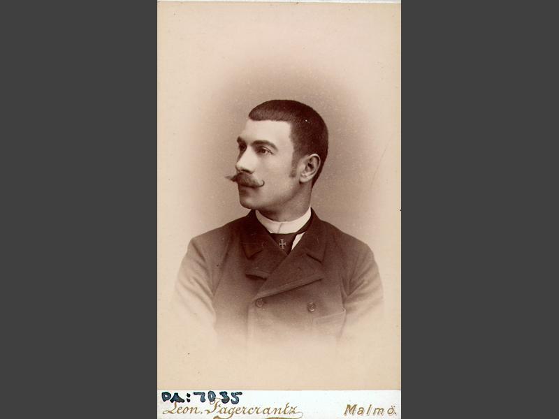 Beskrivning: Visitkortsfotografi. Porträtt av fotografen Leon Fagercrantz.