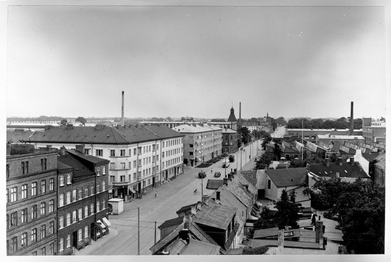 Ystadvägen, byggnaden t.h. f.d. Malmö Läderfabriks AB