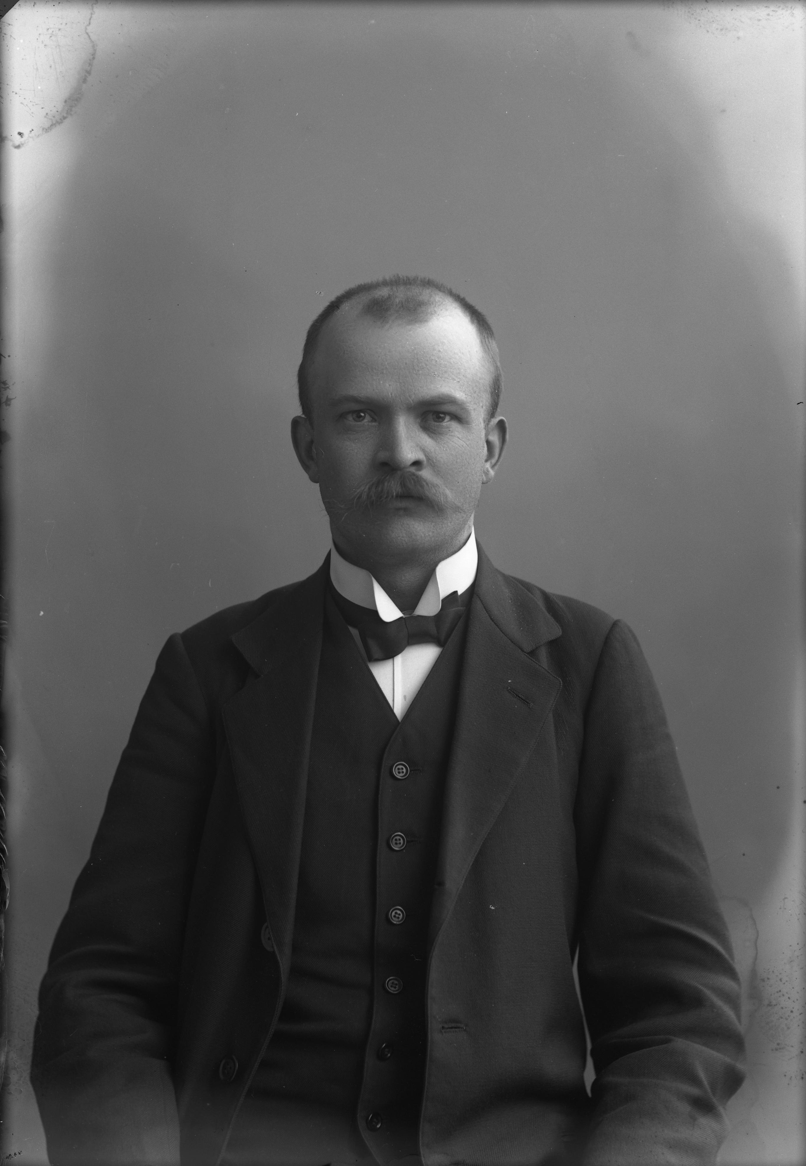Beskrivning: Porträtt i halvfigur av Axel Lagerstedt.