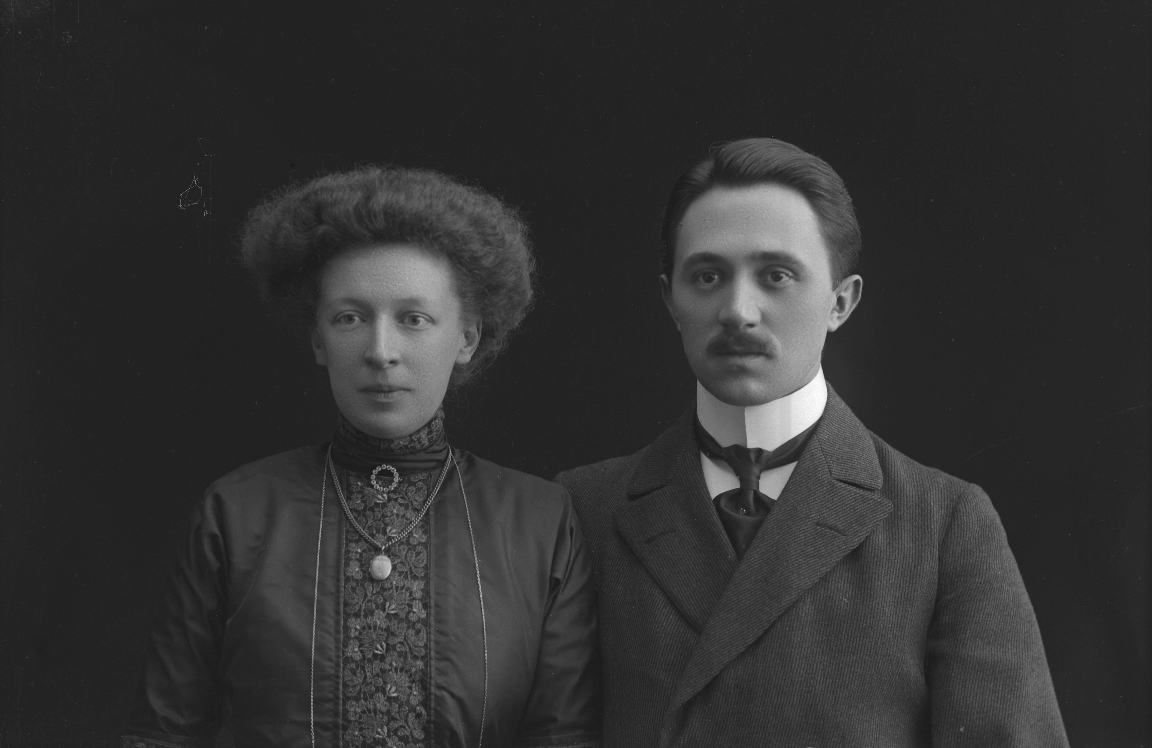 Beskrivning: Porträtt i halvfigur av herr Lönnberg med fru.