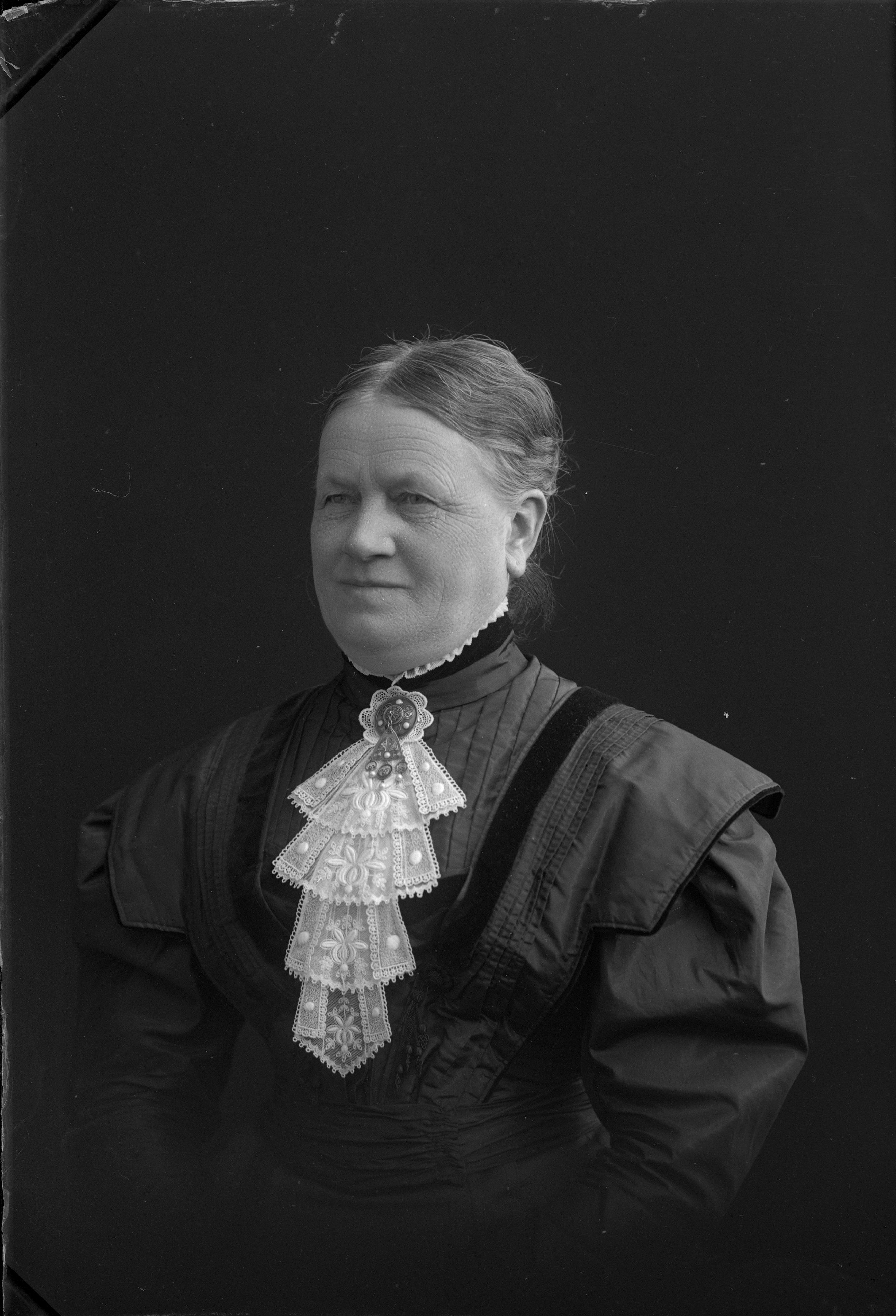 Beskrivning: Porträtt i halvfigur av Hilda Holmgren.