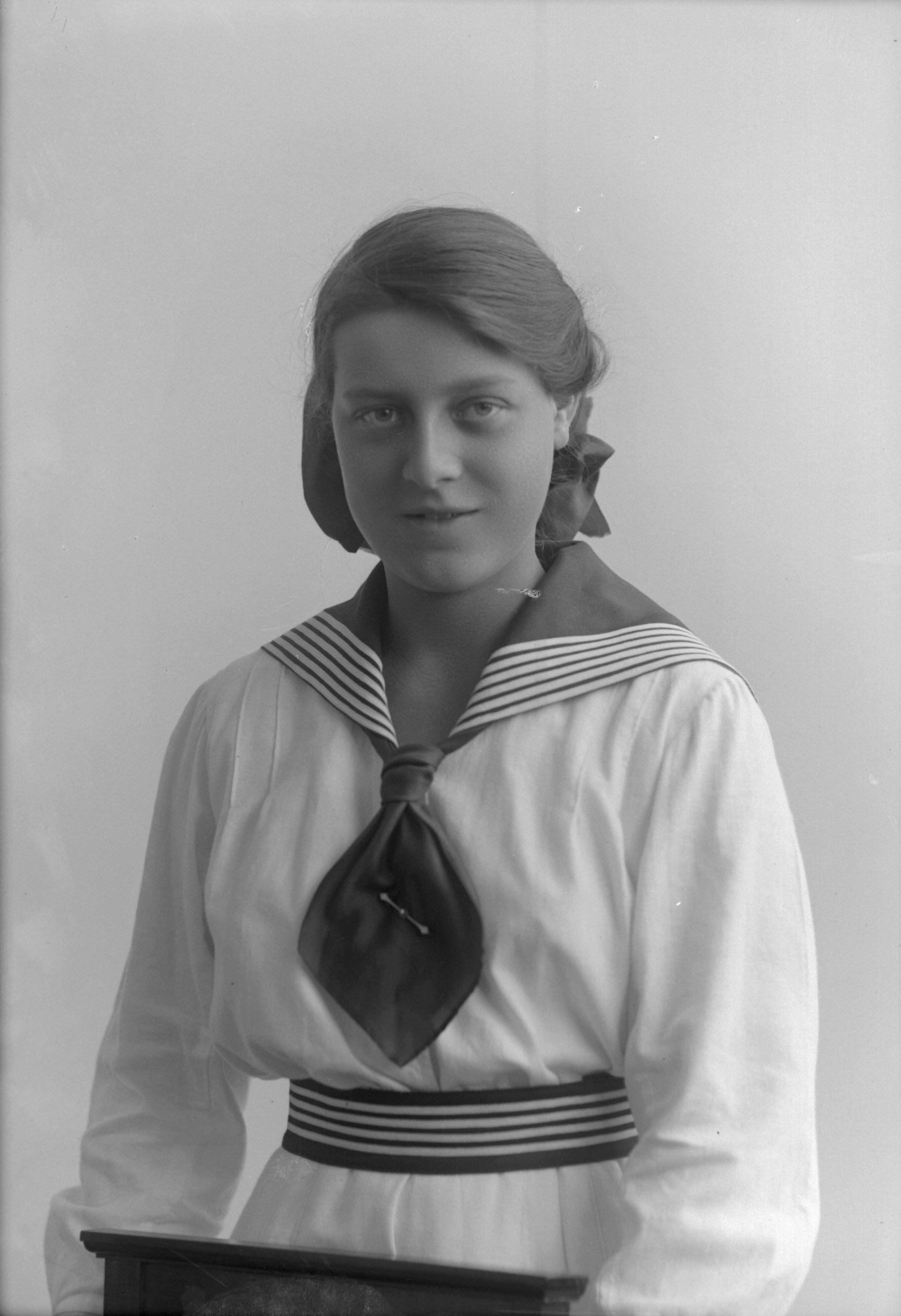 Beskrivning: Porträtt i halvfigur av Karin Warnholtz.
