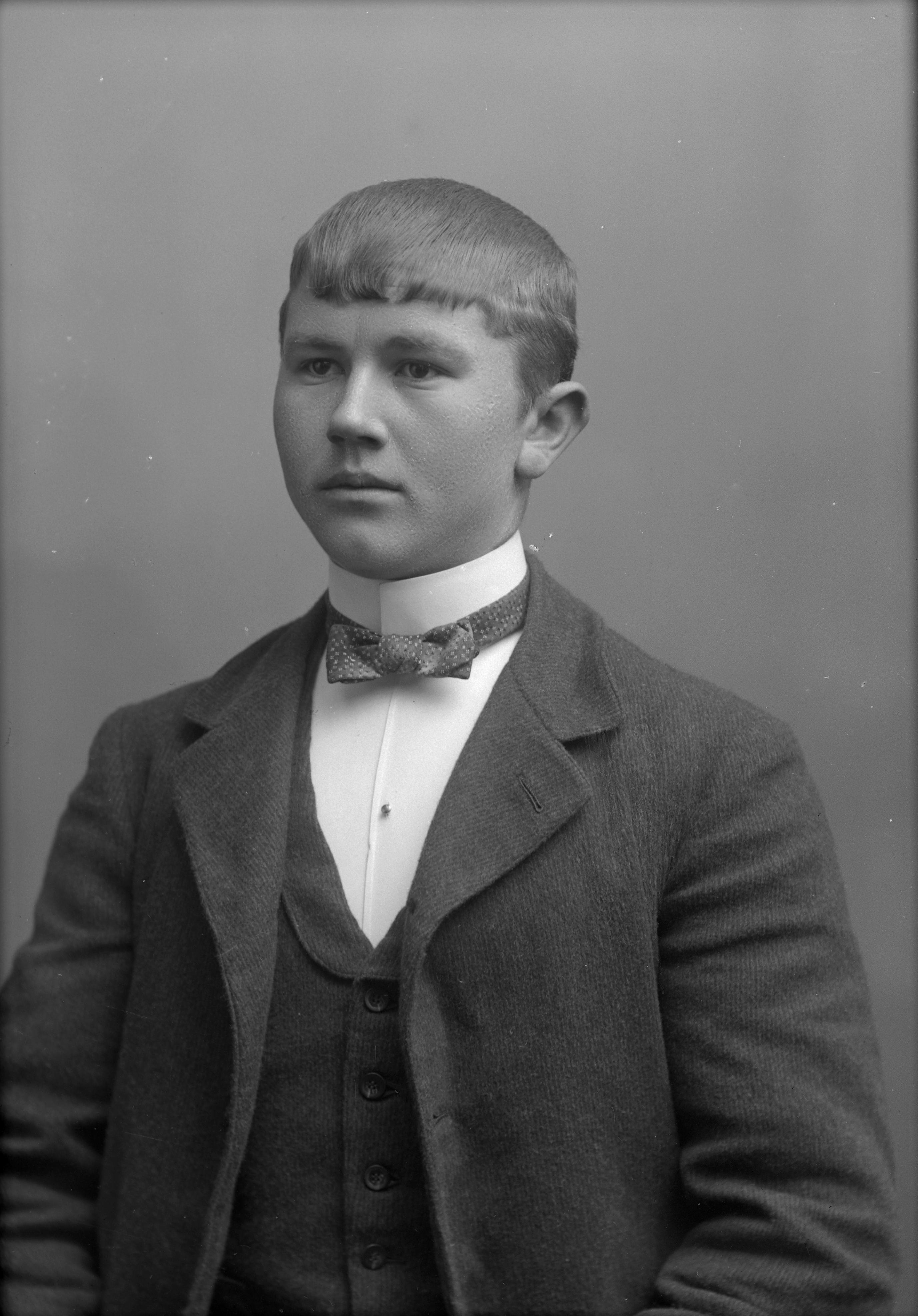 Beskrivning: Porträtt i halvfigur av August Nilsson /Hjärup /Åkarp.
