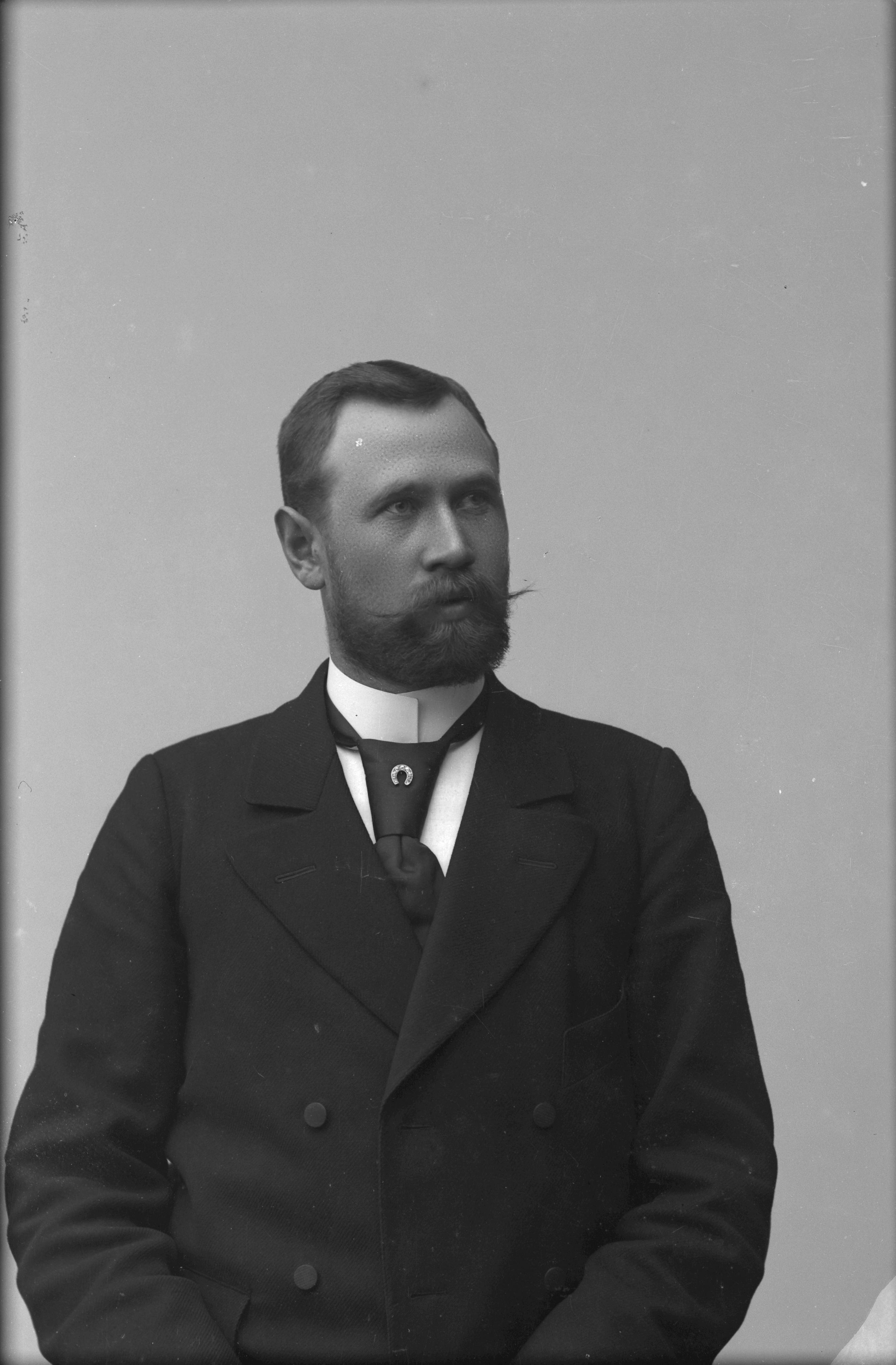 Beskrivning: Porträtt i halvfigur av G. A. Olson /Veberöd.
