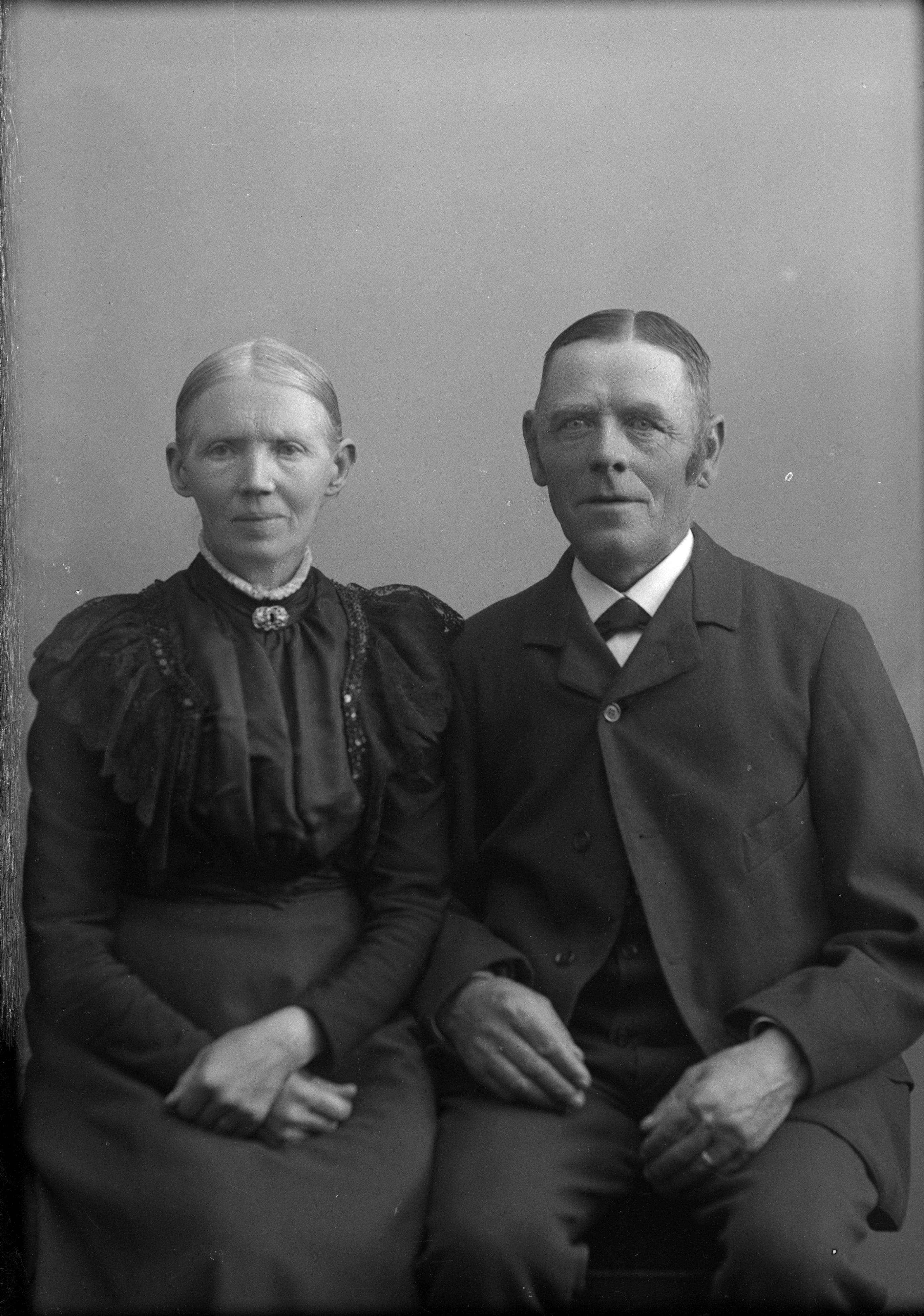 Beskrivning: Porträtt i helfigur av Jöns Josefsson med fru.