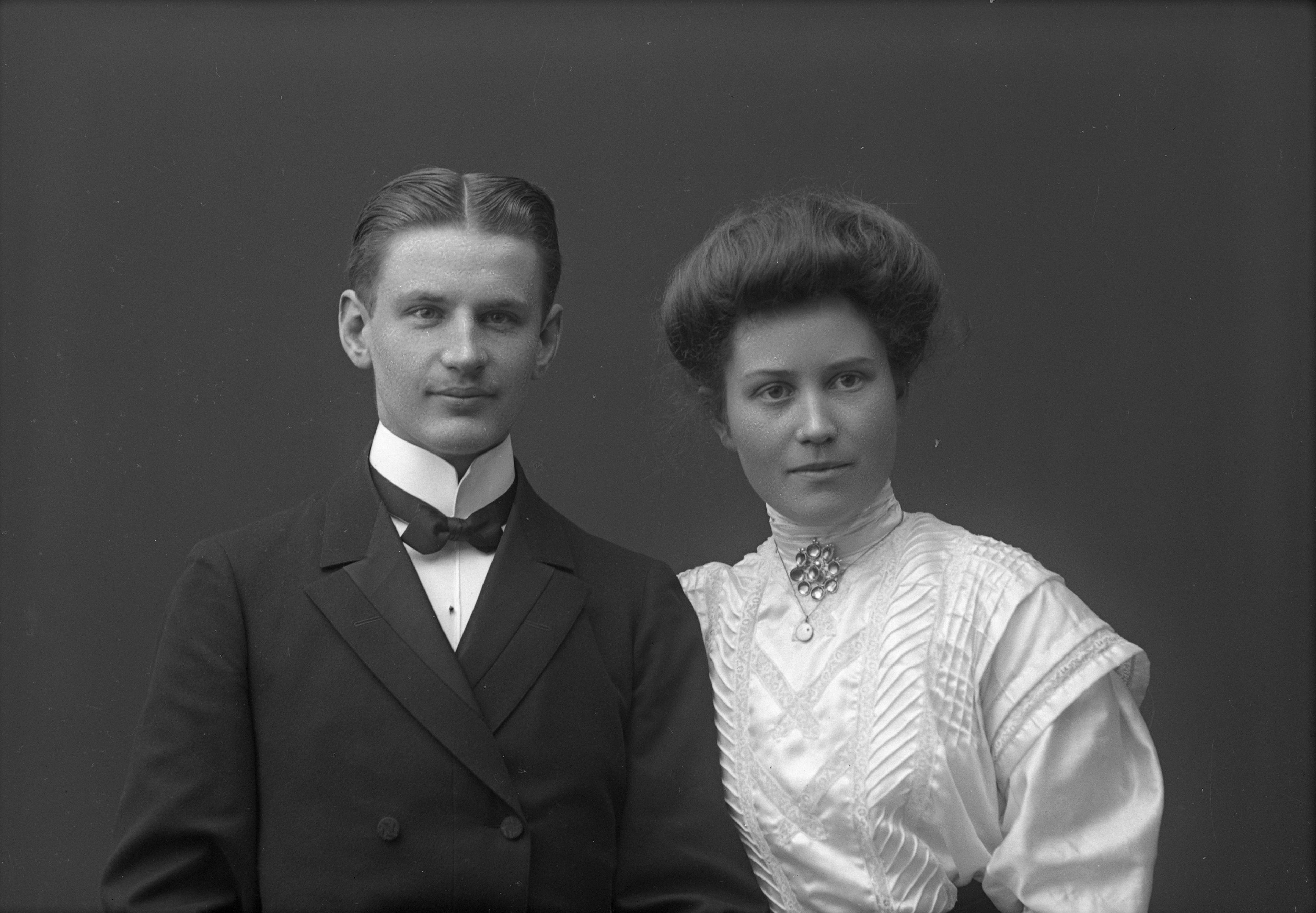Beskrivning: Porträtt i halvfigur av Gustaf Lönndal med fru.