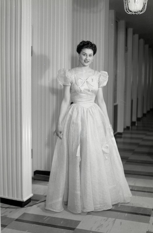 Excellas mannekänguppvisning på Hotell Mollberg. Fotografi av en mannekäng iklädd långklänning.