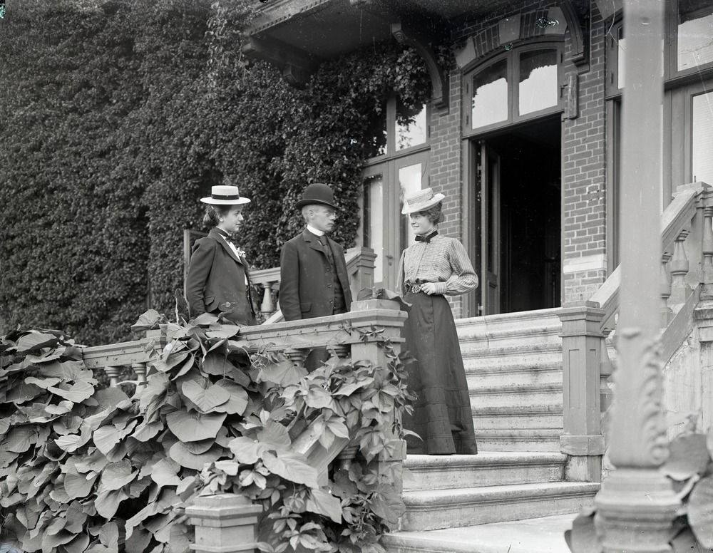 Gruppbild på Sofiero: fru Elsa Baude (f. Palmén), redaktör Hjalmar Jonsson och fru Frida Winnerstrand (f. Kumlin).