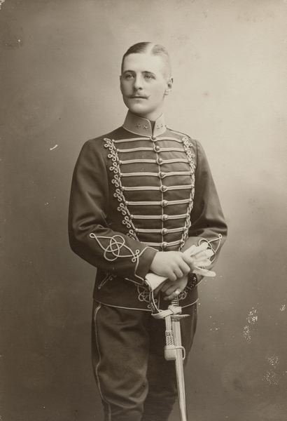 mansporträtt föreställande text på baksidan; Waldemar Henckel Helsingborg, löjtnant vid Skånska Husarreg.