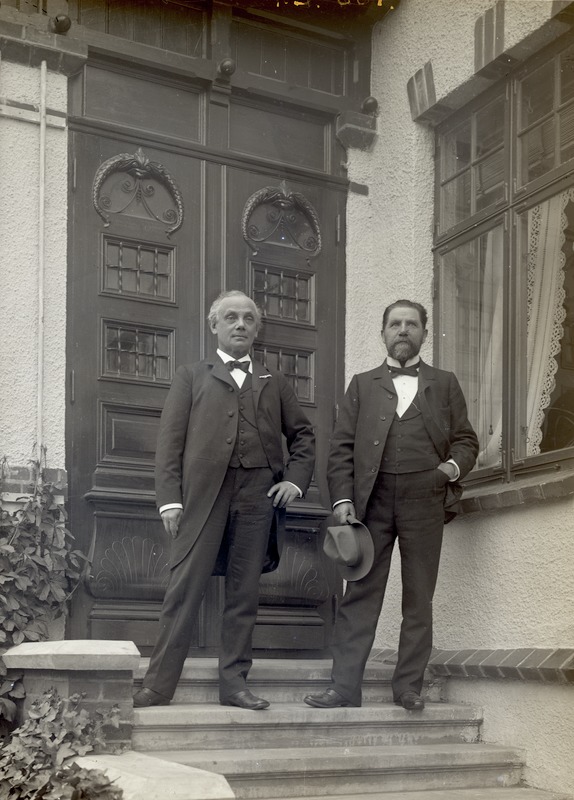 Rektorn vid Köpenhamns universitet Professor Harald Höffding och Rektor fil. dr. S. Wägner. Svensk-Danska studentmötet i Helsingborg 1903.