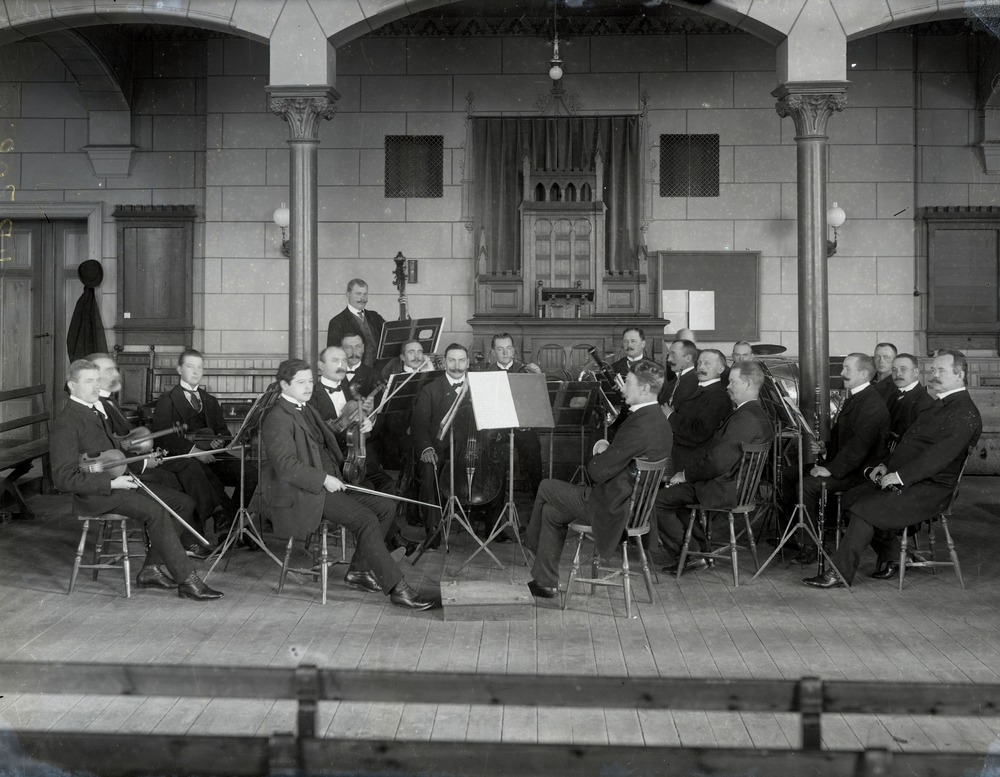 Gruppbild, musikdirektör Olof Lidners orkester med Julius Ruthström som konsertmästare.