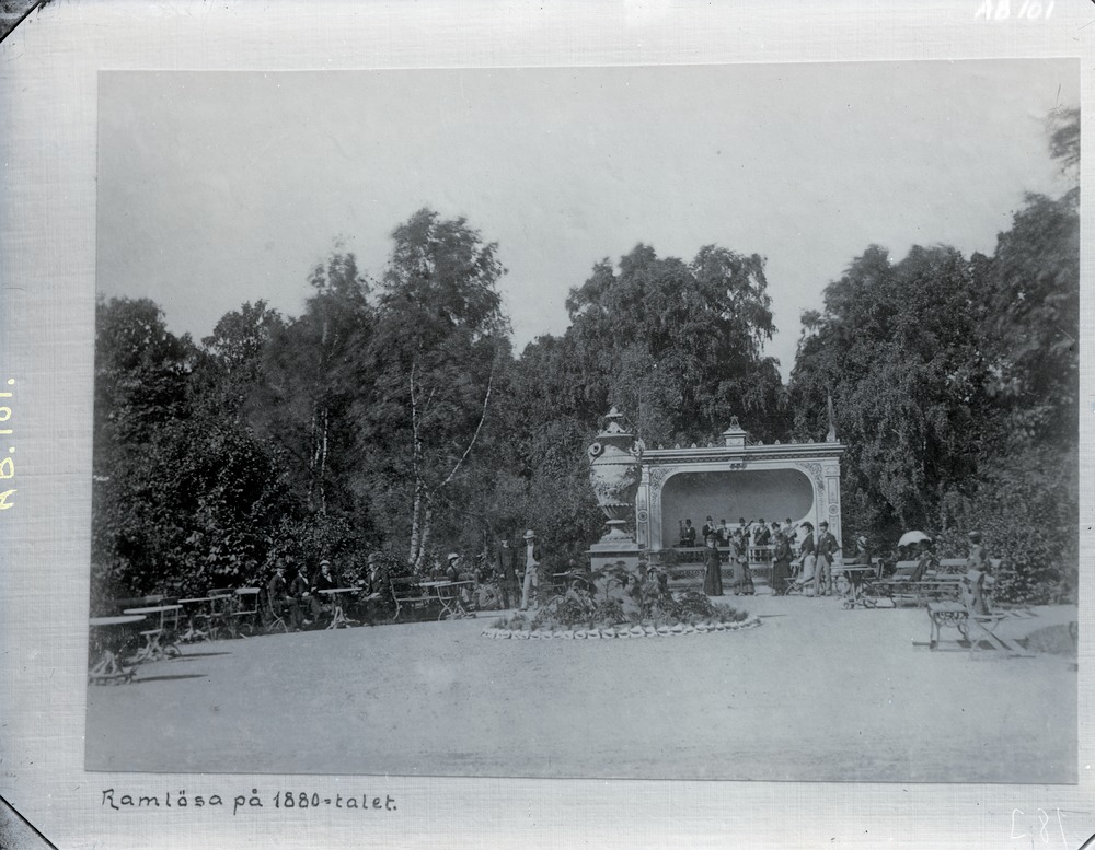 Avfotograferat fotografi som avbildar Ramlösa Brunns musikpaviljong.
