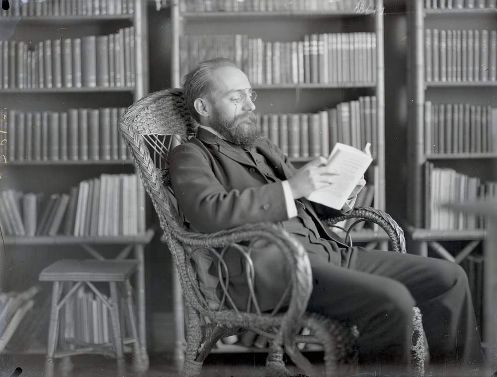 Skalden K. G. Ossian-Nilsson i sitt bibliotek i Bäckahus, Helsingborg.