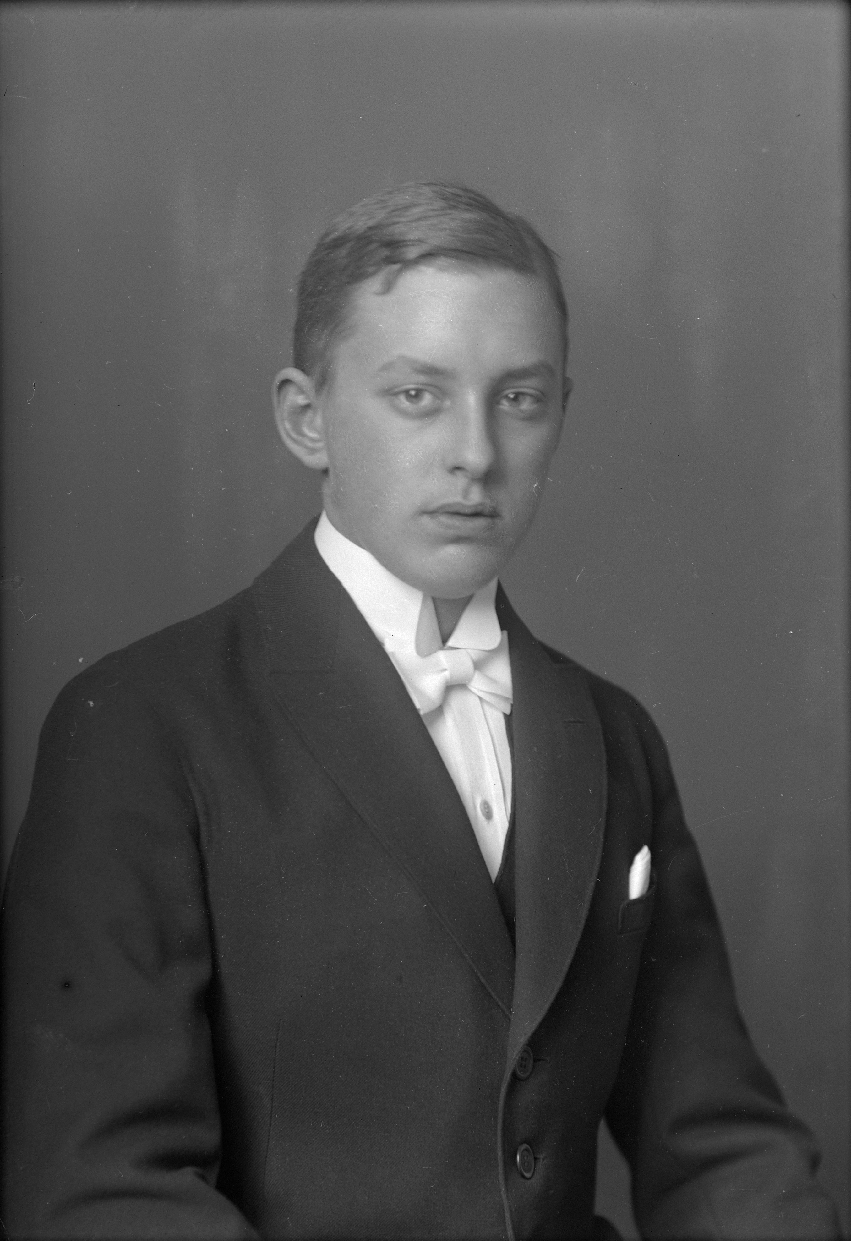 Beskrivning: Porträtt i halvfigur av konfirmanden Axel Quensel.