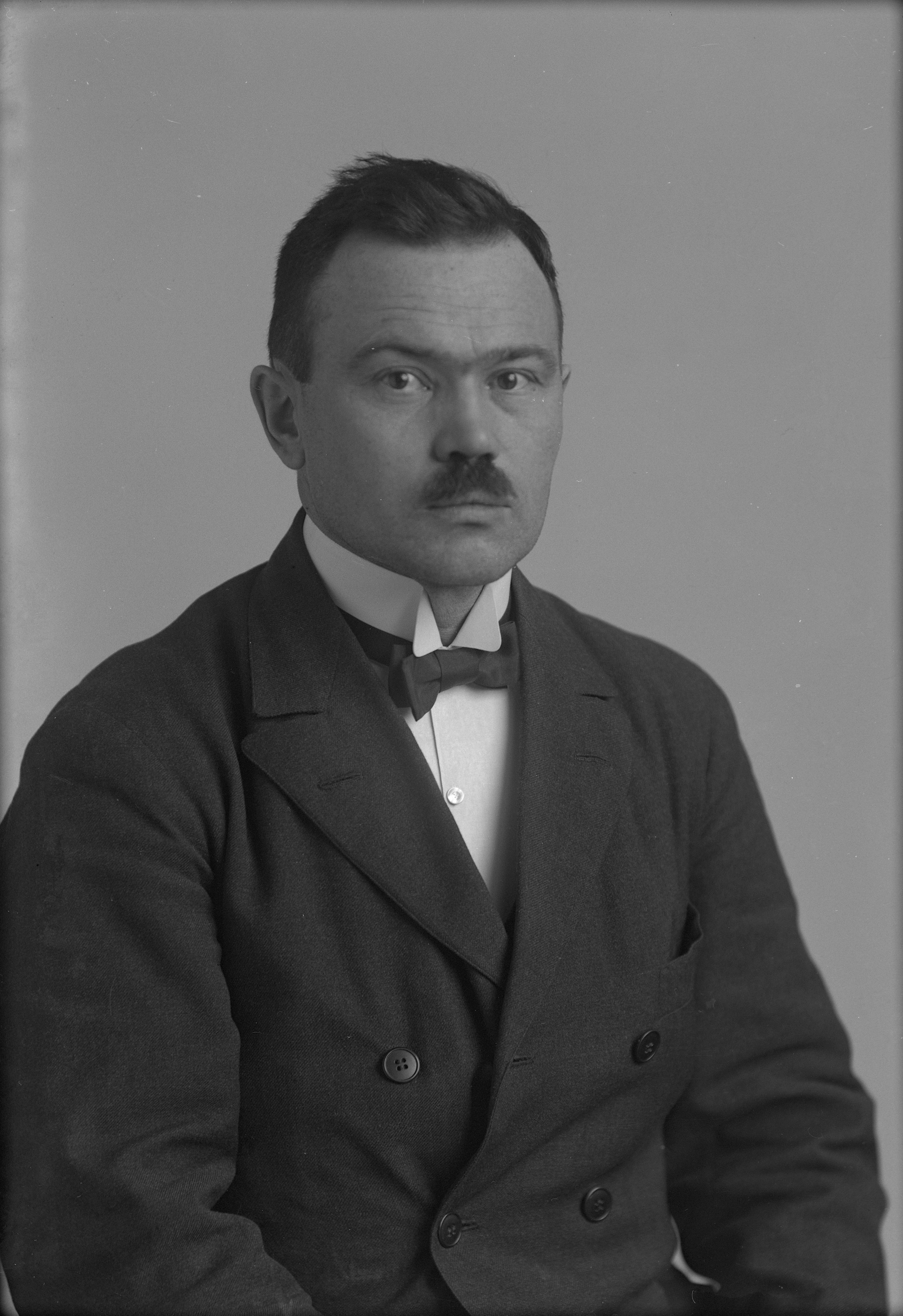 Beskrivning: Porträtt i halvfigur av Axel Bernhoff.
