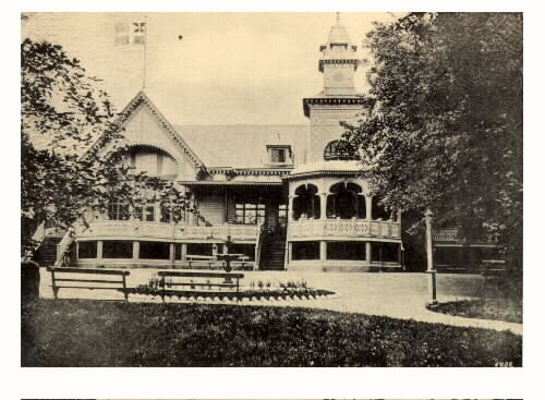Societetsrestaurangen i Varberg med den svensk-norska unionsflaggan hissad, så de stora verandorna har således tillkommit före 1905 (då unionen upplöstes). Byggnaden invigdes 1883 och året efter byggdes en smal taktäckt veranda.