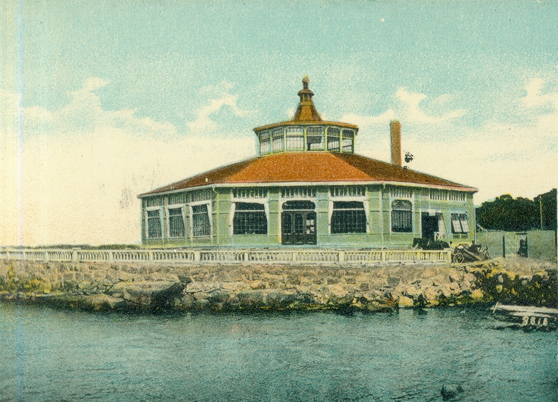 Kolorerat vykort med Strandpaviljongen, Särö Hafsbads Restaurant.