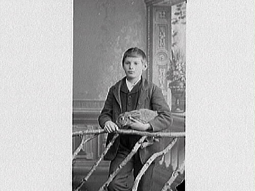 Ateljéfoto. Troligen yngste brodern Erik Ranch med en kanin.