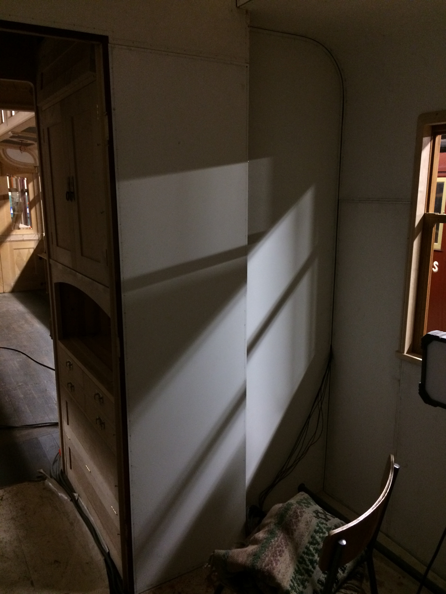 Skåp och hylla i buffén av SJ Ro2 2702.