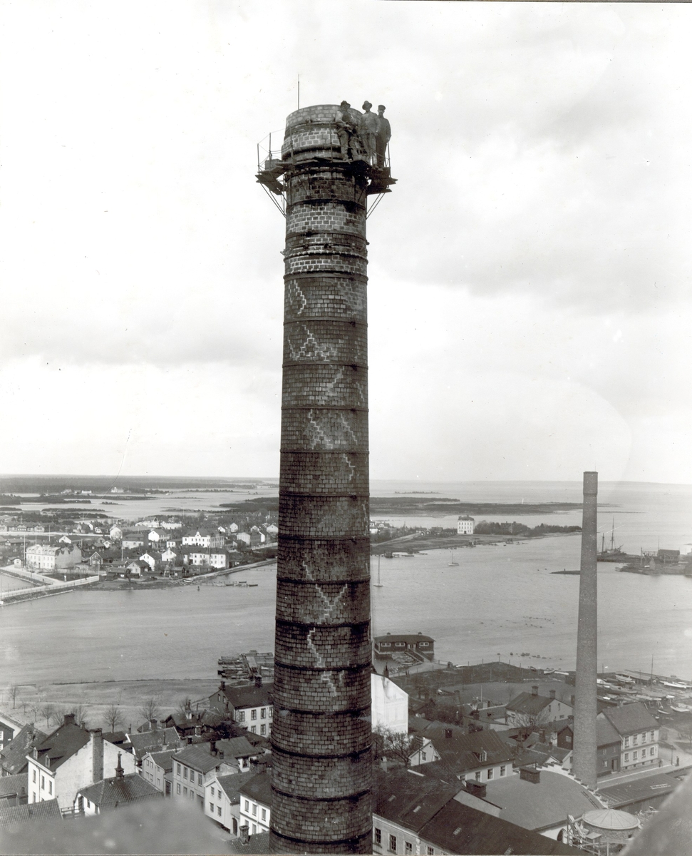 Utsikt mot norr med Ångkvarnens skorsten i förgrunden.