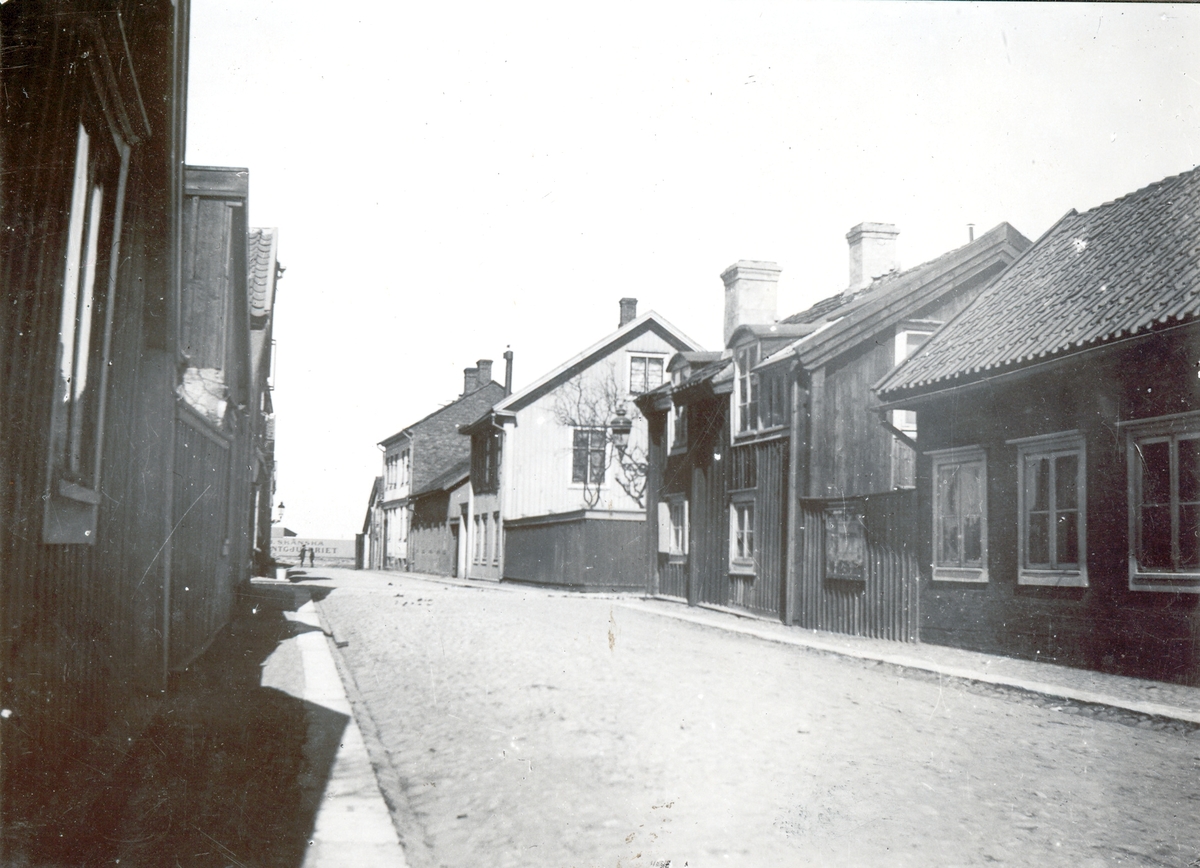 Strandgatan på Malmen. I fonden skymtar Skånska cementgjuteriets anläggning i kv. Hajen.