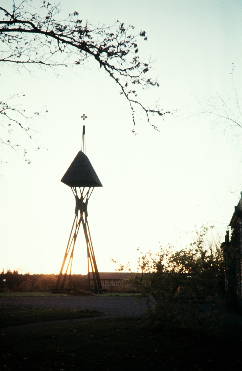 Klockstapeln vid S:t Sigfrids kapell, Växjö 1956. I bakgrunden ser man S:t Sigfrids folkhögskola.