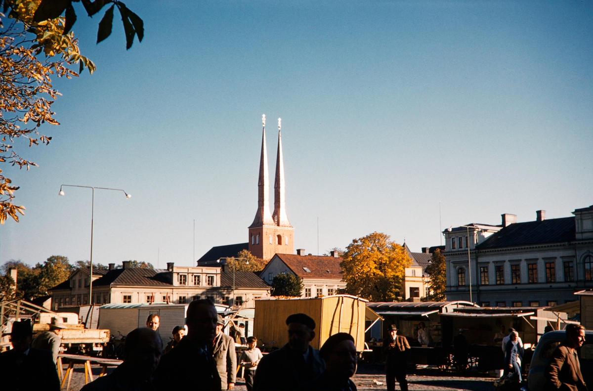 Stortorget i Växjö med domkyrkan i bakgrunden. 1959.
