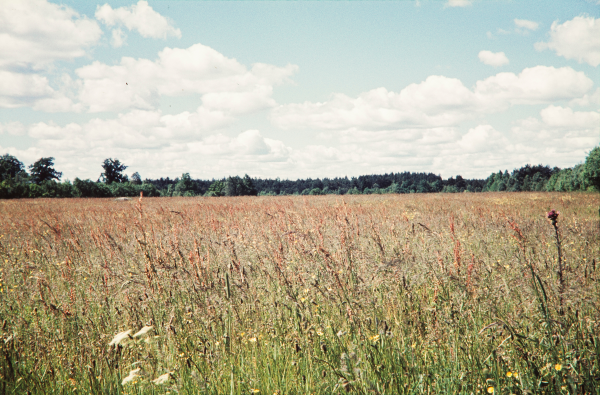 Äng vid Bergunda kyrka, i Växjö. 1959.