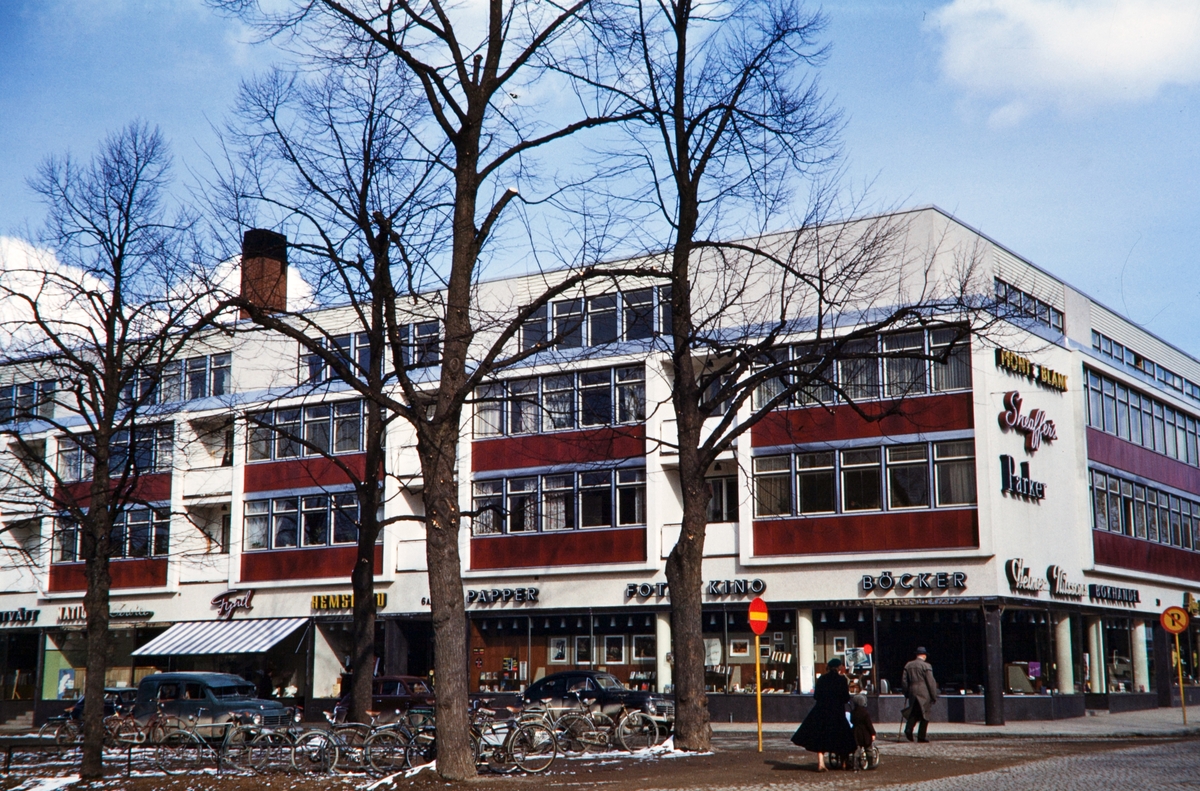 Helmer Nilssons hus 1956, hörnet Storgatan / Västra Esplanaden, Växjö.