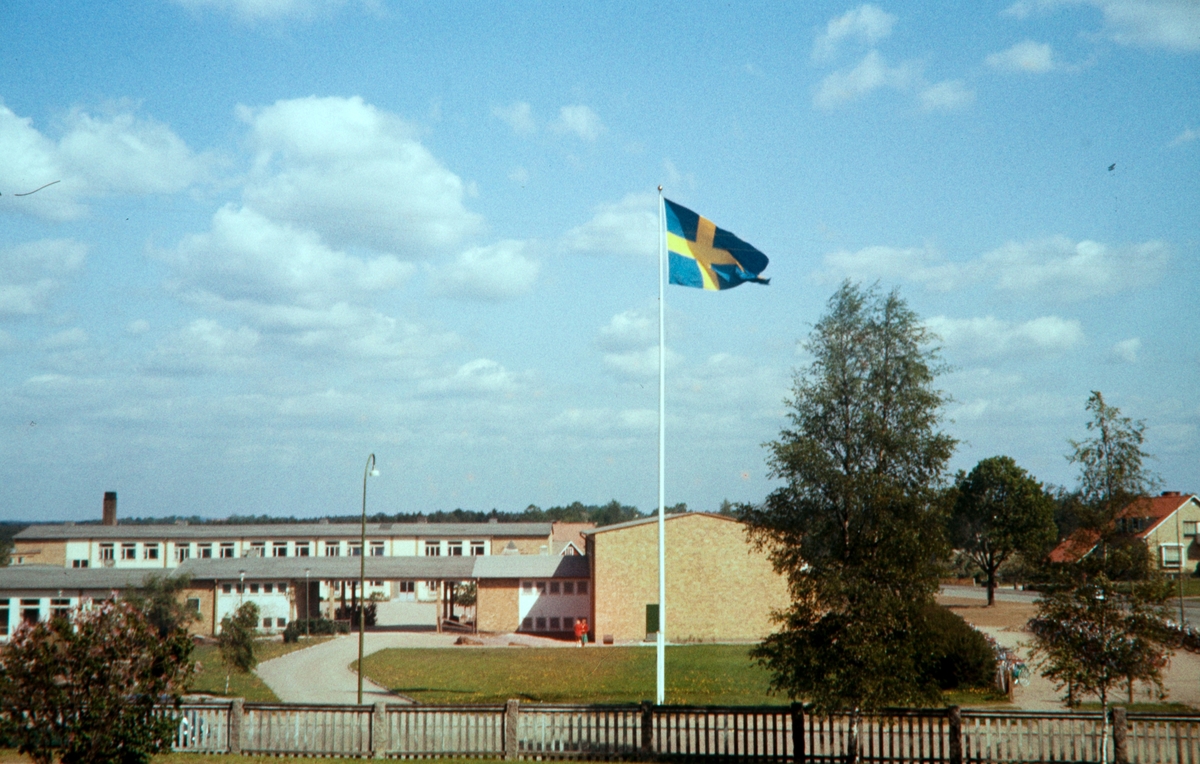 Ulriksbergsskolan på Väster i Växjö. 1956. Fotat söderifrån, från Borgmästaregatan.