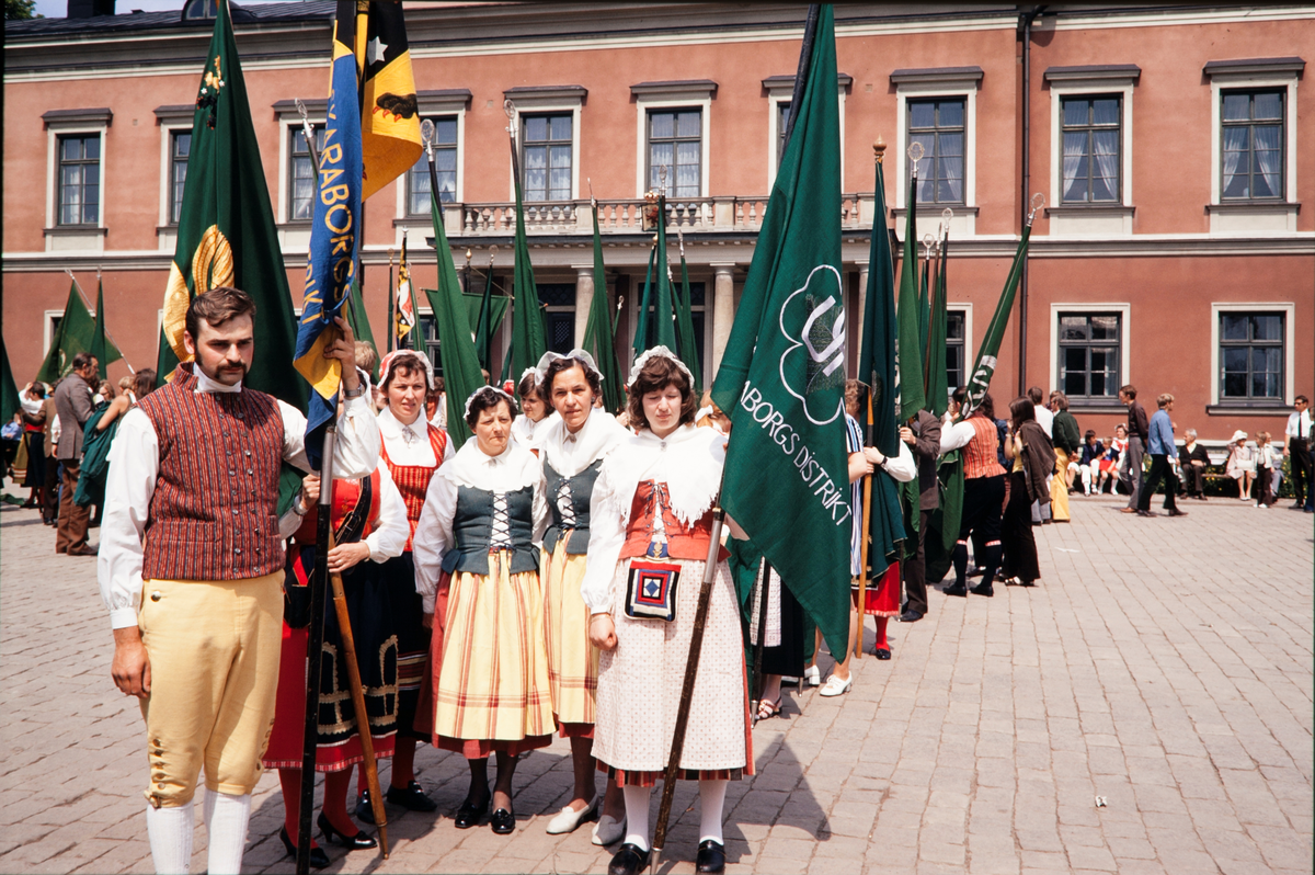 Centerpartiets riksstämma, Växjö 1972. Skaraborgs distrikt uppställda på Stortorget inför parad.