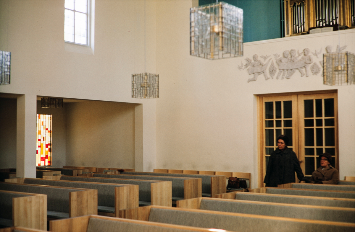 Skogslyckans kyrka, interiör. Växjö, 1970.