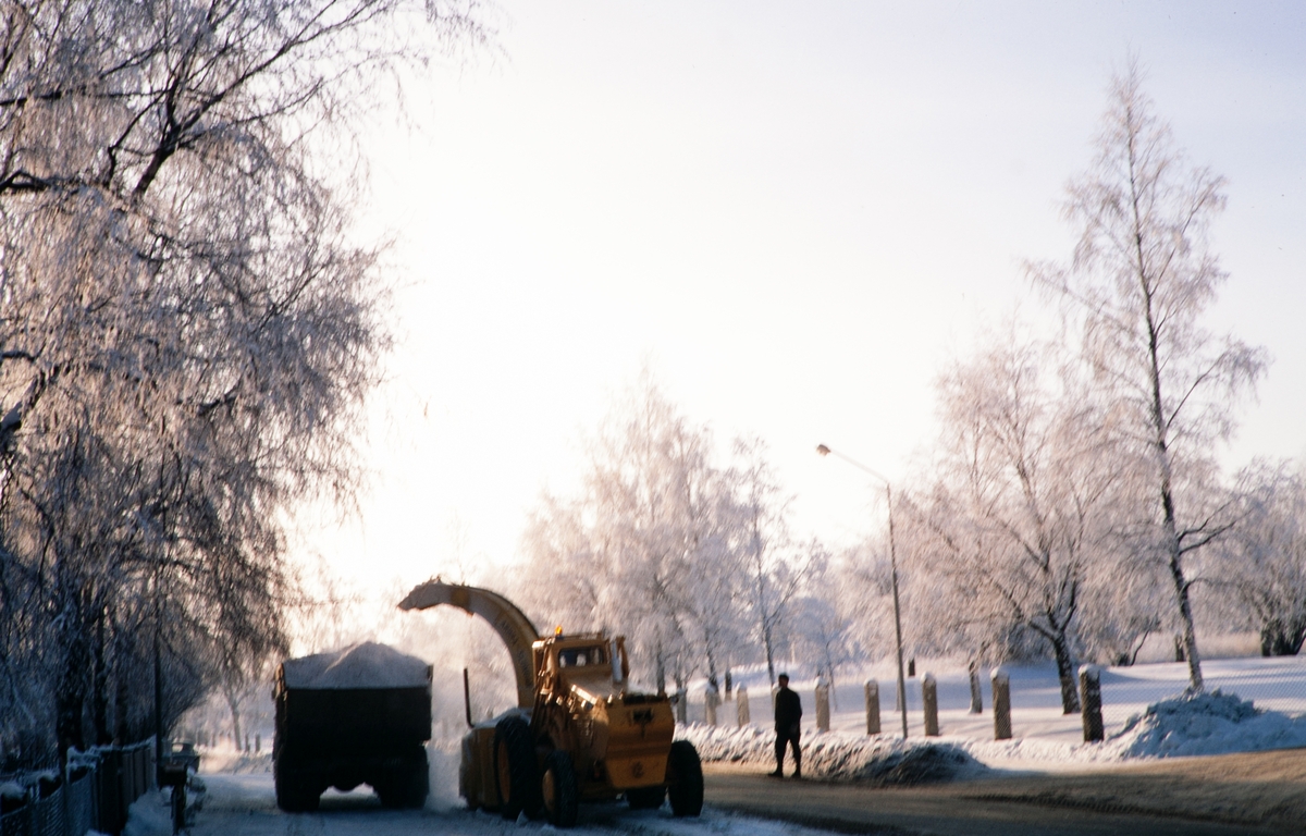 Snöröjning på Ulrikbergspromenaden. Växjö, 1969.