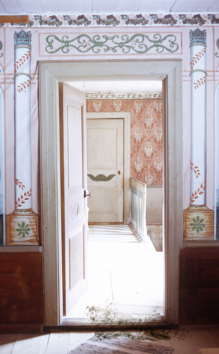 Målningar kring och över dörr. Dörröverstycke "1853".