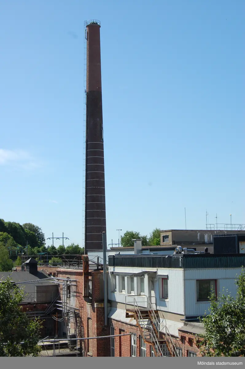 Papyrus/Soabs industribyggnader och skorsten (vid Byggnad 13) år 2010, efter att företaget hade lagts ner. Pappersbrukets skorsten, det 65 meter höga landmärket i Kvarnbyn, revs fredagen 8 maj 2015,